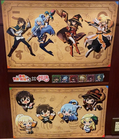 HUB この素晴らしい世界に祝福を!3 HUBとこの素晴らしい世界に祝福を!3のコラボ。 このすば3期コラボ。 店舗によってはめぐみんのピザ等。 カズマ 850円 ピーチリキュール/みかんジュース/トニックウォーター アクア 850円 ライチリキュール/トニックウォーター ダクネス 850円 グレープフルーツジュース/トニックウォーター/マルティニビター オリジナルホロステッカー — 2024/05 HUB