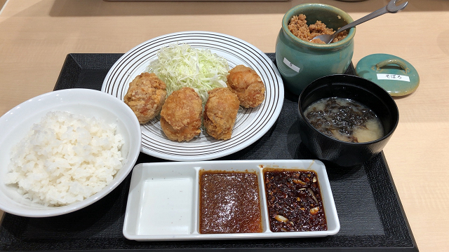 カラッとした竜田っぽい衣にジューシーな肉汁なもも肉。