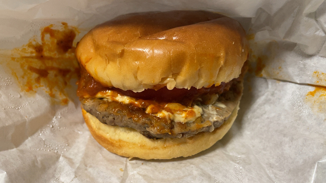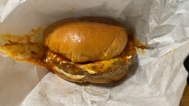 タレとバンズの甘甘攻撃で喉が焼ける甘さ。