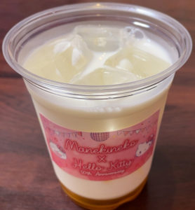 まねきねこ サンリオキャラクターズ まねきねことサンリオキャラクターズのコラボ。 コラボメニューでステッカーが貰える。 あまくておいしそ~カスタードミルク 550円 なんかすごいキャラ出た。 — 2024/08 まねきねこ