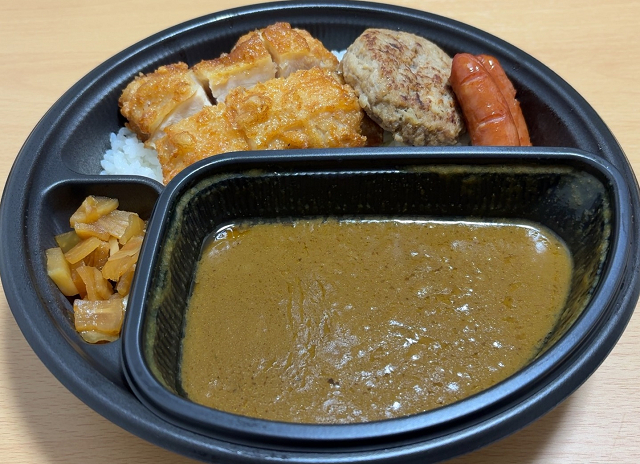 ビーフカレー+パリパリチキン+ソーセージ(2本)+ハンバーグ(1個)
