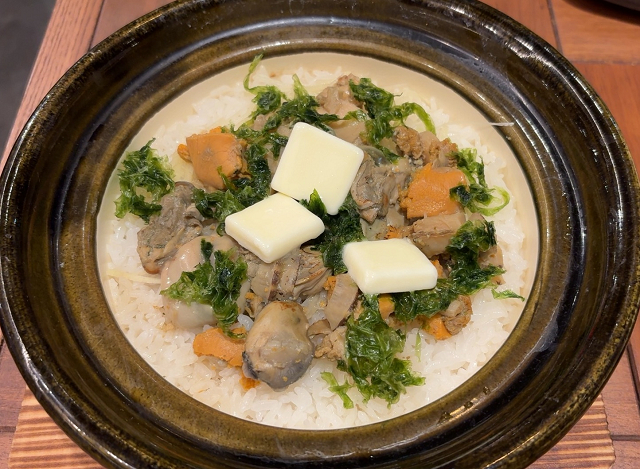 塚田の土鍋ご飯 -牡蠣とホタテの海苔しおバター- 2480円