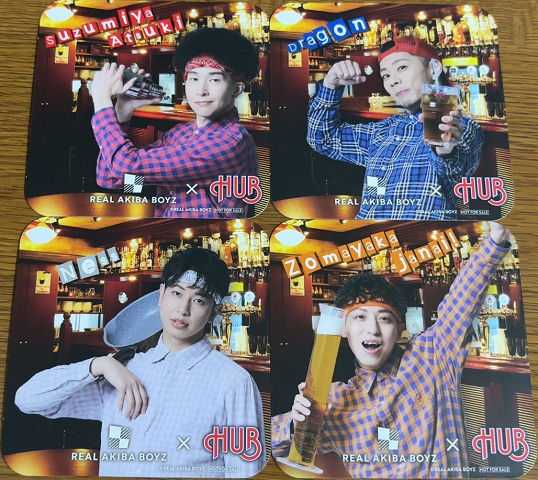 HUB REAL AKIBA BOYZ HUBとリアルアキバボーイズのコラボ。 やさしいあつき♡ 890円 ゴリっとエナジー感じてけ! 890円 なぬちかいんるフルーツヘイボール! 890円 ムラトミのレモン&チリとケイジャンソースの手羽唐ポテト 850円 ノベルティのコースター。 RABは魔法少女とチョコレゐトが天才過ぎるて尊敬している。 — 2025/ HUB