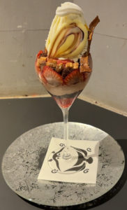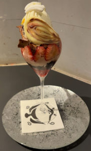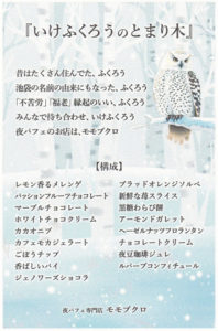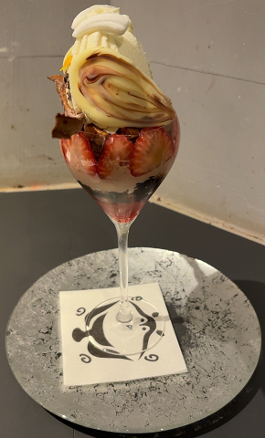 モモブクロ モモブクロはGAKUの夜パフェ屋。 GAKUは2025/12に壱番屋に買収されて子会社となった。 GAKUは札幌で飲みの〆にパフェを食べる「夜パフェ文化」の発祥店らしい。 モモブクロは池袋駅から徒歩数分。 メニューにはパフェが図解されているが撮影禁止。 入口はタイトルだけ。 いけふくろうのとまり木 2880円 創造的な味がした。 注文後にストーリーと構成が記載されたポストカードが配布される。 刺さる人には良さそう。 — 2026/01 モモブクロ 東京都豊島区西池袋1-40-5