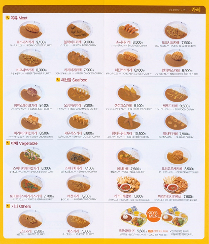 韓国ではカレー・オムライス・パスタと3ジャンル。